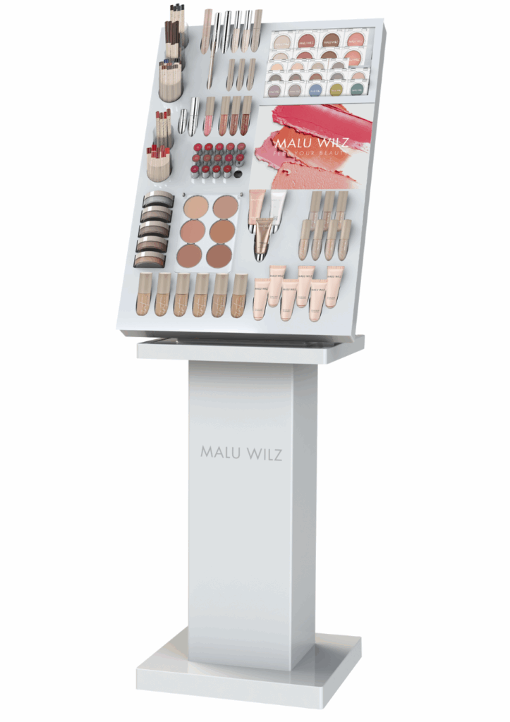 בחרי בעיצוב יופי מהדרגה הראשונה עם סטנד האיפור MALU WILZ למכוני יופי. עמדת המכירות שלנו מושכת את עיני הלקוחות מהרגע הראשון שהם נכנסים לעסק שלך. העיצוב המלוטש והמודרני של הסטנד משדר מקצועיות וסטייל, מראה מיד את מחויבותך לאיכות ולמצוינות.